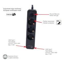 Πολύμπριζο Προστασίας Υπέρτασης,Διακόπτη,5x16A,3Χ1.5mm 1m,Μαύρο,με προστασία...