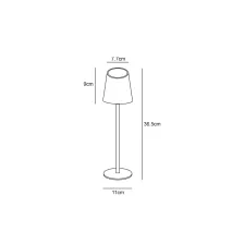 36,15 €Επιτραπέζιο φωτιστικό Zen 3.5W. Είναι στεγανό και κατάλληλο για χρήση σε εξωτερικό χώρο IP54. Δίνεται η επιλογή αλλαγής της θερμοκρασίας φωτός, μέσω στιγμιαίου πατήματος του.Επιτραπέζιο Dres 2.5W IP54 Μαύρο 3000K 2000mAh h37.5d13.5cm base 12cm Dim USB-C